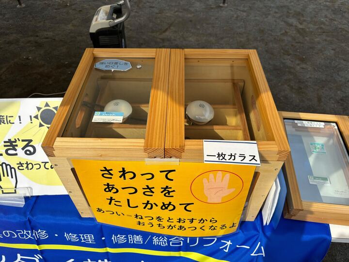 また、窓性能の比較デモ機では、シングルガラスとペアガラス、アルミサッシと樹脂サッシの違いを手で触れて体感いただきました。断熱性能の違いに驚く声も聞かれました。