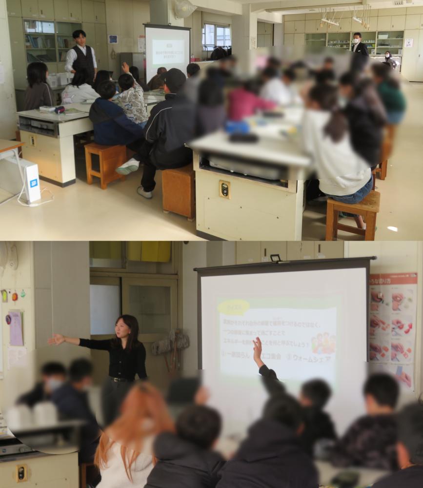 授業後には「エコな暮らしは意外と簡単に実践できるものもあり、今日からやってみたいと思った」「実験を通して暖かい家について詳しく知れてうれしかった」などの感想をいただきました。