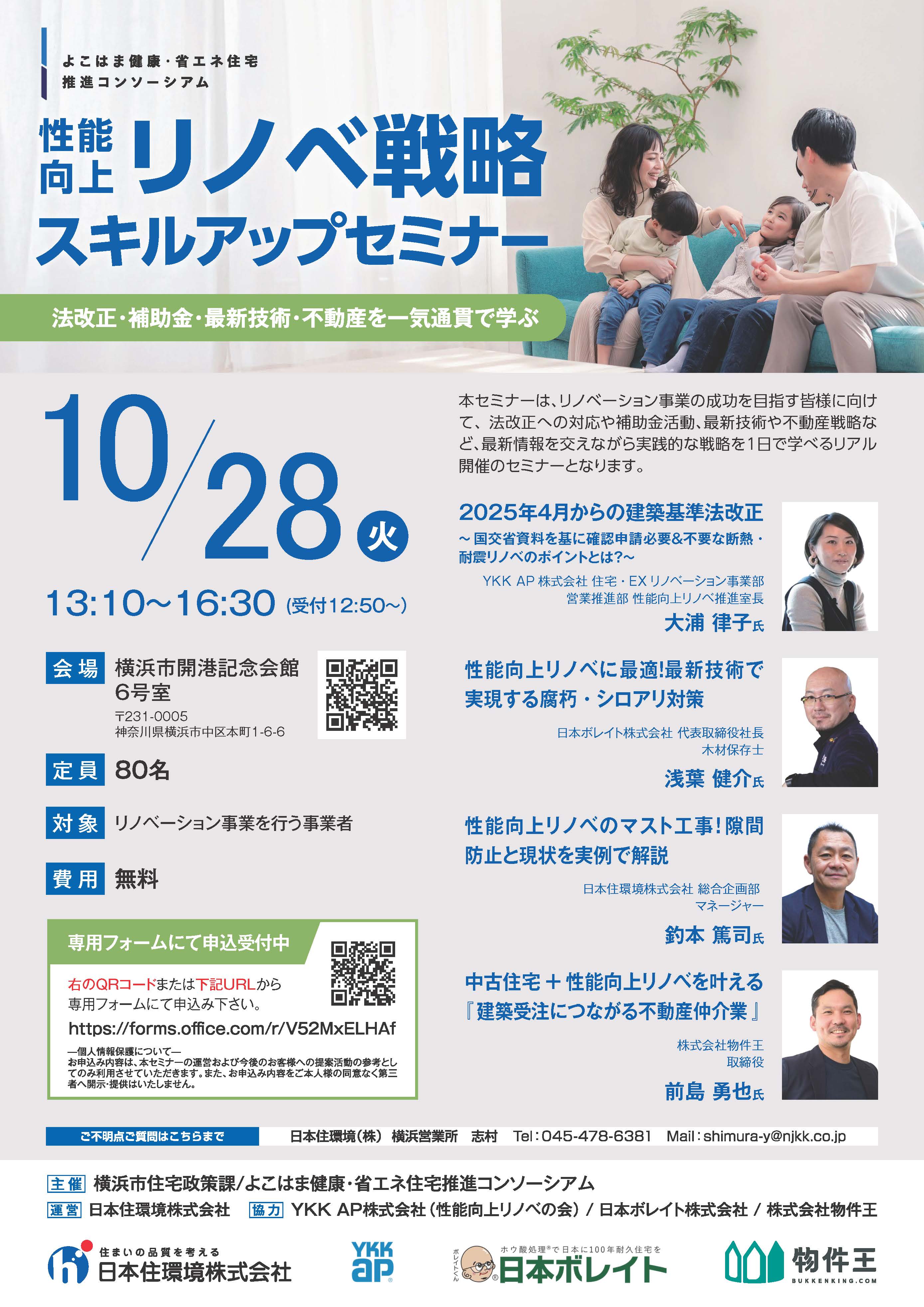 令和7年10月28日(火曜日)に、日本住環境株式会社が運営する『性能向上リノベ戦略スキルアップセミナー』を開催します。