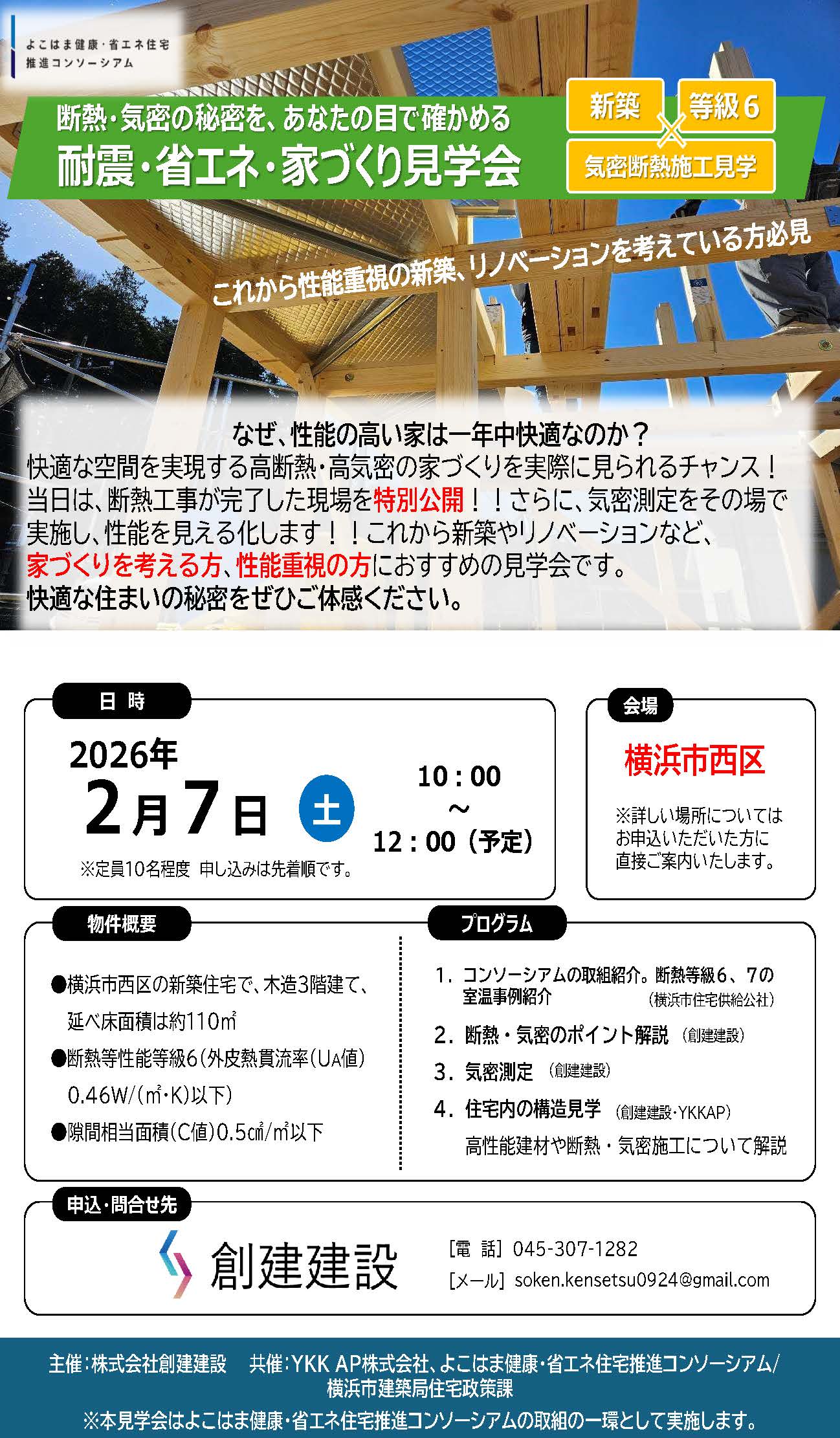 本イベントは株式会社創建建設主催、YKKAP株式会社の共催のもと、よこはま健康・省エネ住宅推進コンソーシアムの取組の一環として開催します。